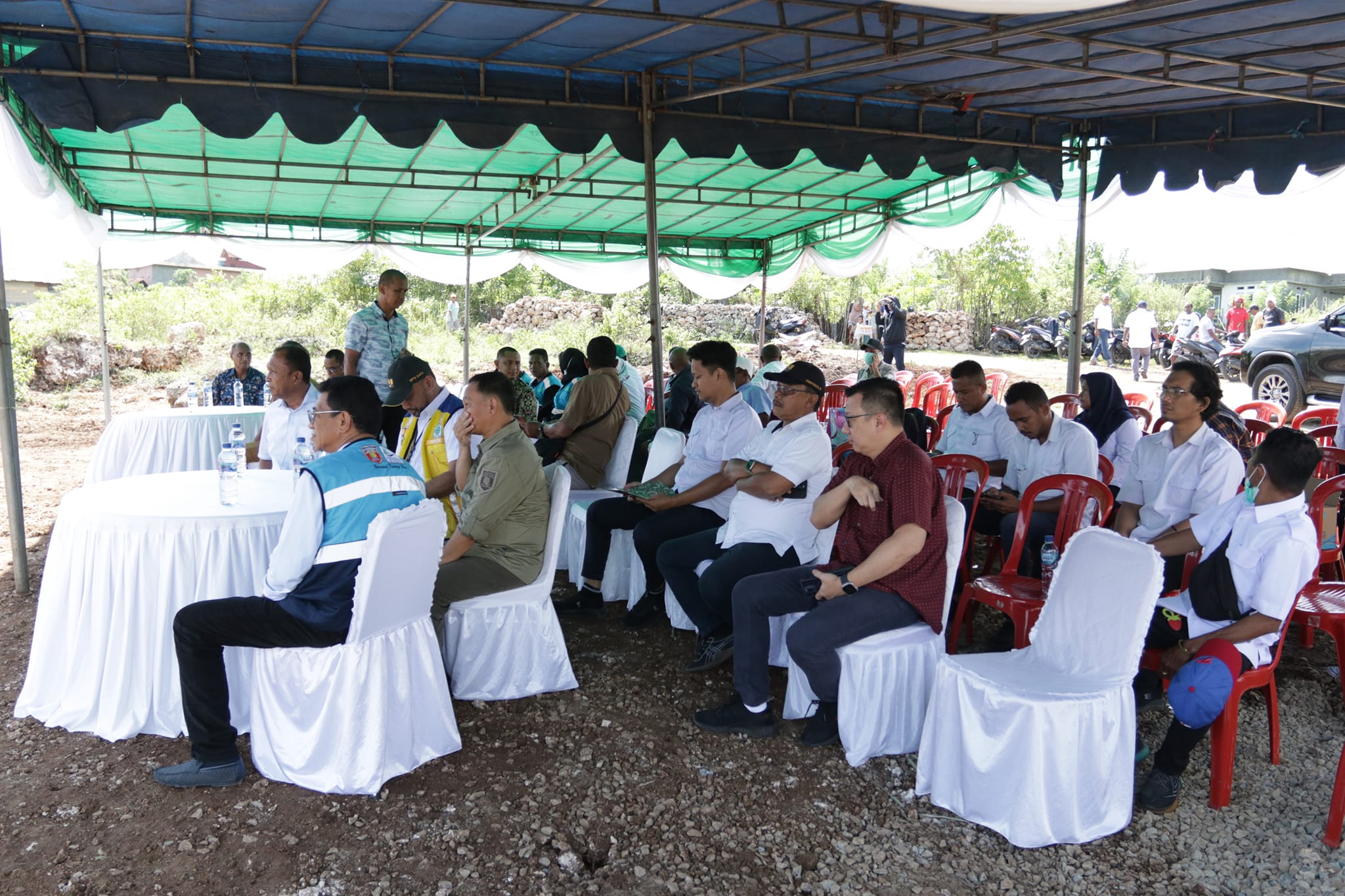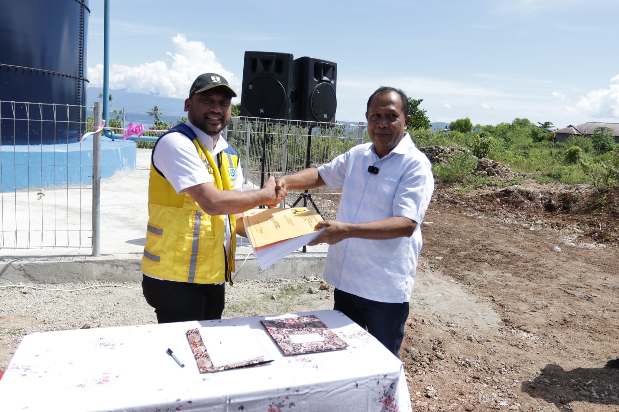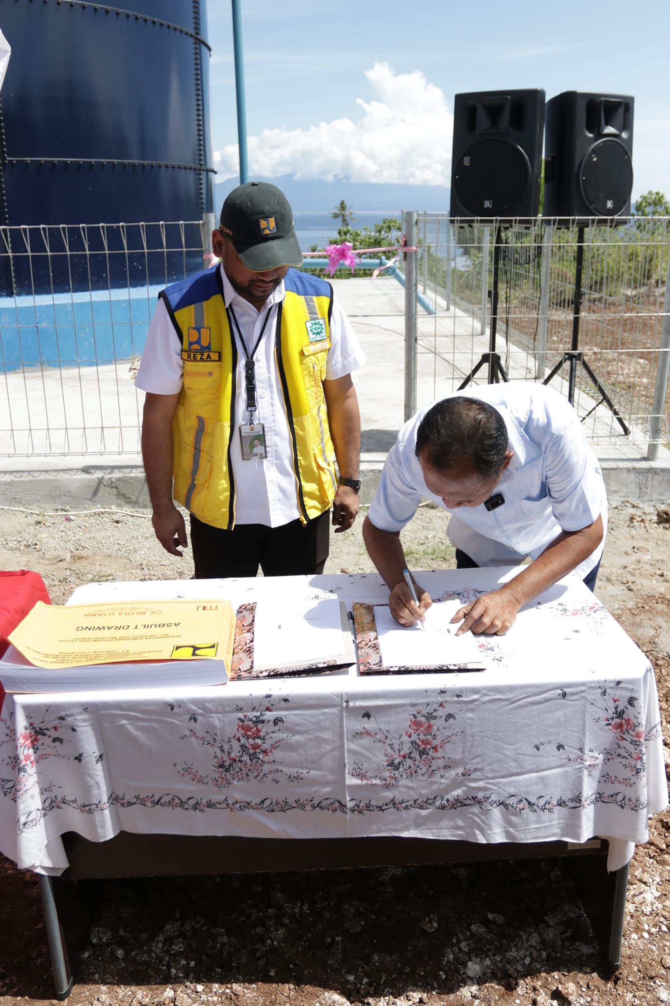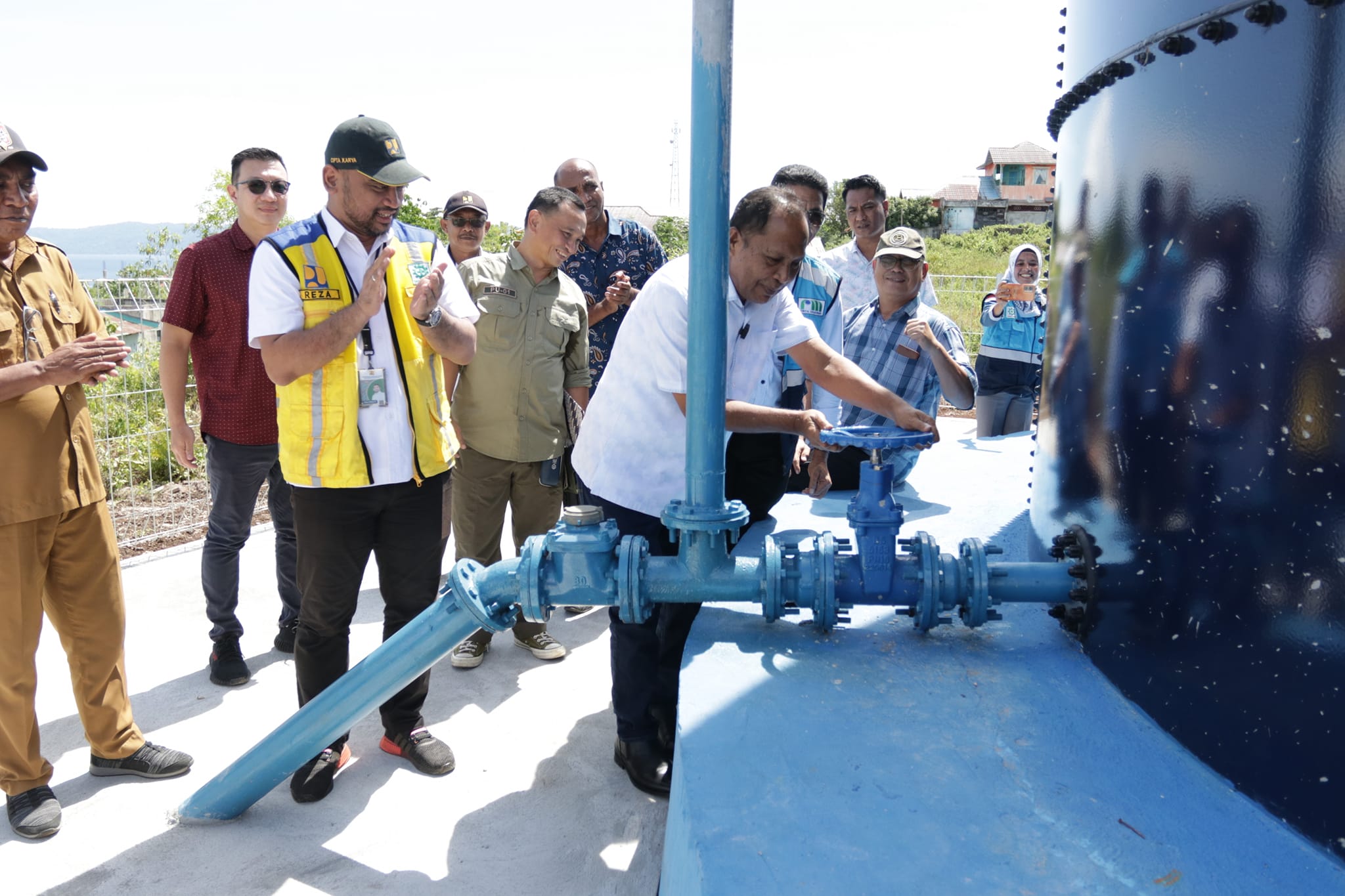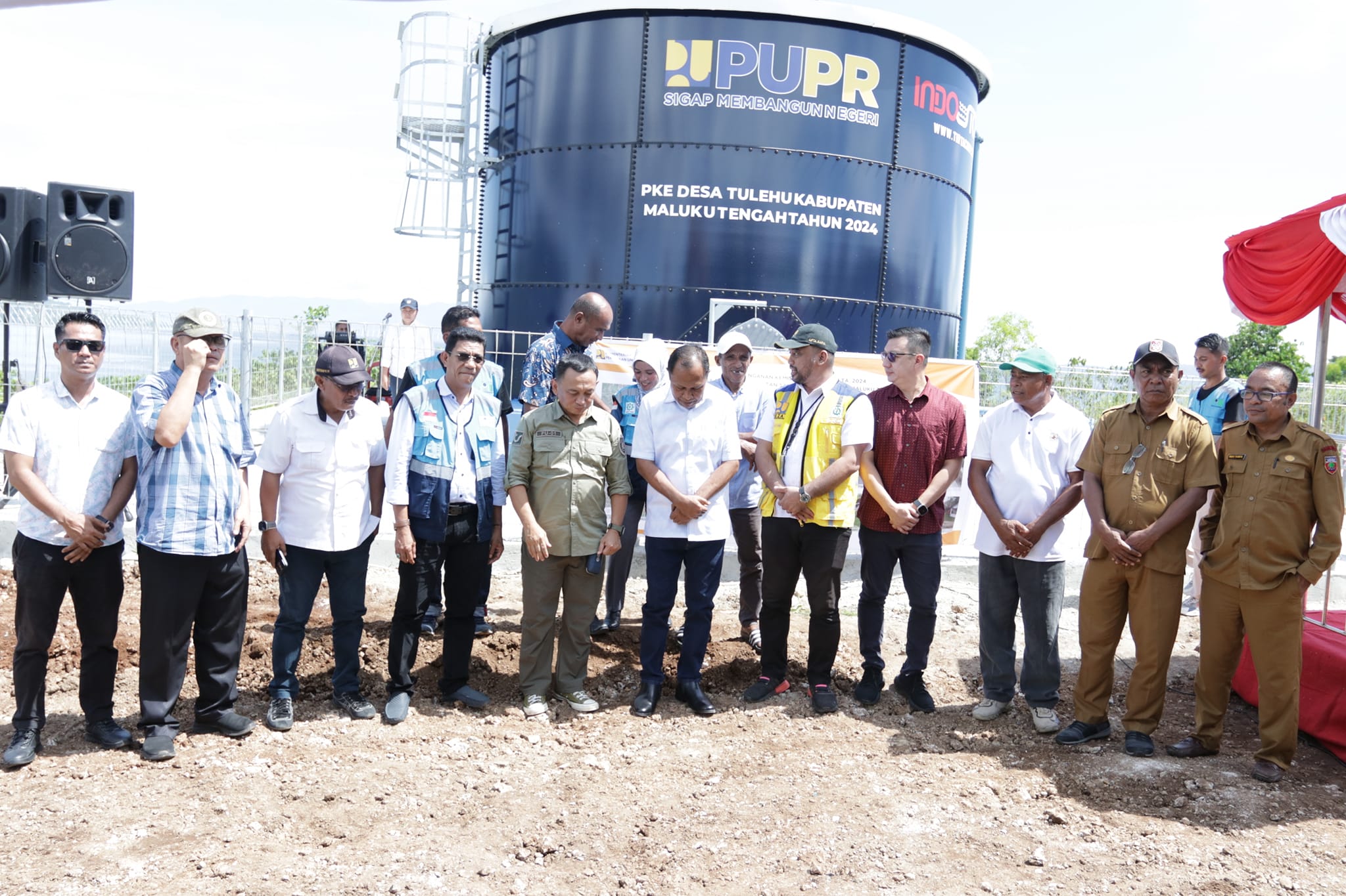 Mass Medion Pangaroan,S.T.,M.P.W.K, Kepala Dinas PUPR Hasan Firdausi, ST.M.Si. dan Pimpinan OPD Lingkup Pemda Maluku Tengah, Camat Salahutu, Kepala Pemerintah Negeri Tulehu, Direktur Perumdam Tirta Nusa Ina Kabupaten Maluku Tengah Bersama Seluruh Pegawai Serta Tamu Undangan Lainnya.